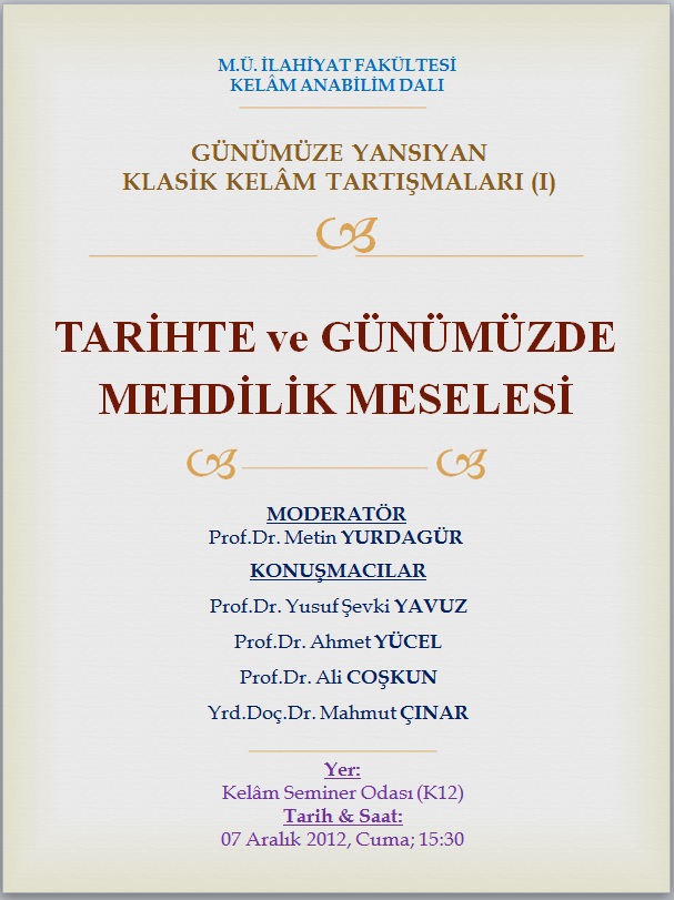 Marmara İlahiyat Kelam ABD Panel: "Günümüze Yansıyan Klasik Kelam Tartışmaları" Mehdilik tıklayınız!